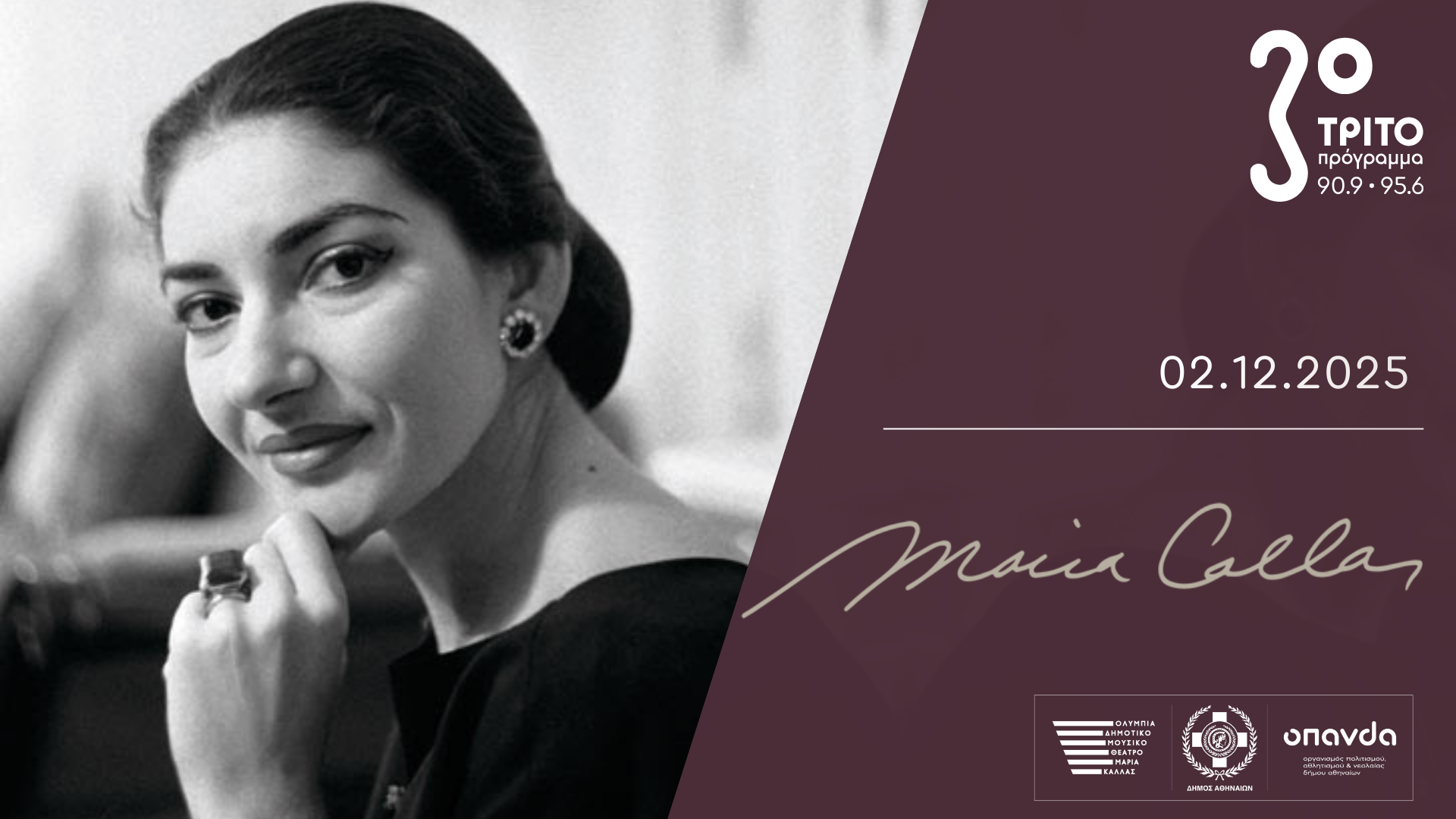 Το Τρίτο Πρόγραμμα, σε συνεργασία με τον Οργανισμό Πολιτισμού, Αθλητισμού και Νεολαίας του Δήμου Αθηναίων (ΟΠΑΝΔΑ), παρουσιάζει ένα ειδικό αφιέρωμα στη Μαρία Κάλλας την Τρίτη 2 Δεκεμβρίου 2025, γενέθλια ημέρα της μεγάλης Ελληνίδας σοπράνο.