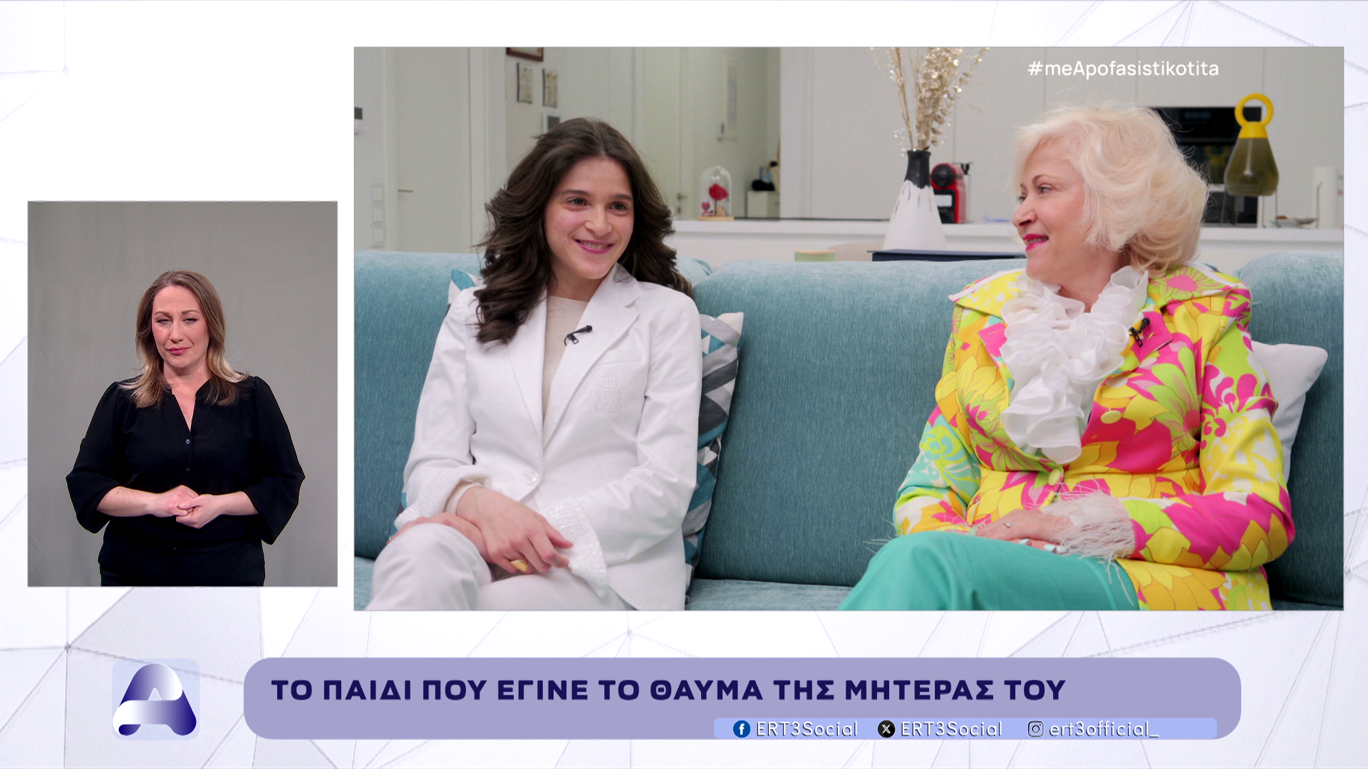 Η εβδομαδιαία ημίωρη εκπομπή της ΕΡΤ3 «Με Αποφασιστικότητα», με την Αναστασία Αργυριάδου, συναντά την Κατερίνα Μποφίλιου και τη μητέρα της, Γεωργία Μπαντούνα, τη Μεγάλη Τετάρτη 8 Απριλίου, στις 19:30, σε μια βαθιά ανθρώπινη και συγκινητική ιστορία ζωής.