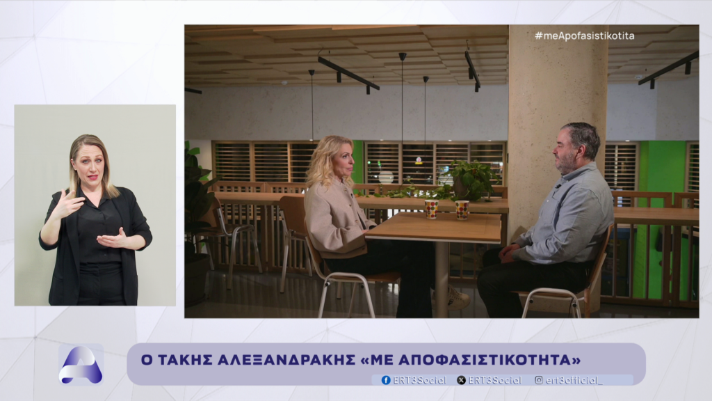 Η εβδομαδιαία ημίωρη εκπομπή της ΕΡΤ3 «Με Αποφασιστικότητα», με την Αναστασία Αργυριάδου, παρουσιάζει σε πρώτη τηλεοπτική μετάδοση την Τετάρτη 18 Μαρτίου, στις 19:30 τον Τάκη Αλεξανδράκη, που έχει μετατρέψει την προσωπική του δοκιμασία σε δύναμη προσφοράς και διεκδίκησης.
