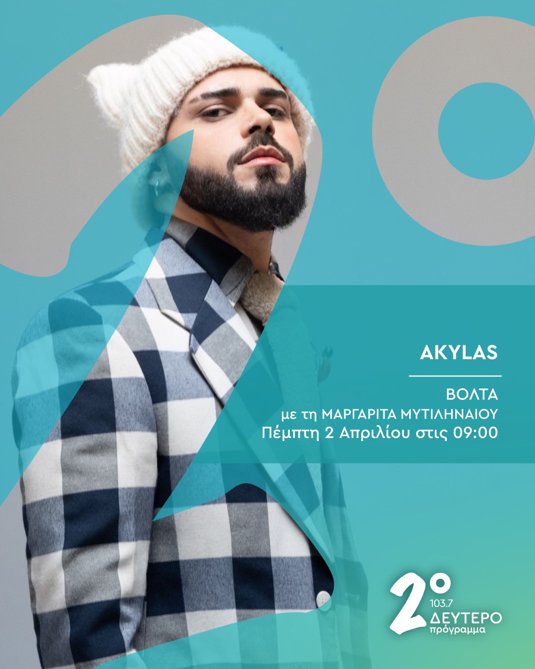 Ένα μήνα και 10 ημέρες πριν τον Α’ Ημιτελικό της Eurovision, ο Akylas (Μυτιληναίος), καλεσμένος της Μαργαρίτας Μυτιληναίου, έρχεται στο Δεύτερο Πρόγραμμα 103,7.