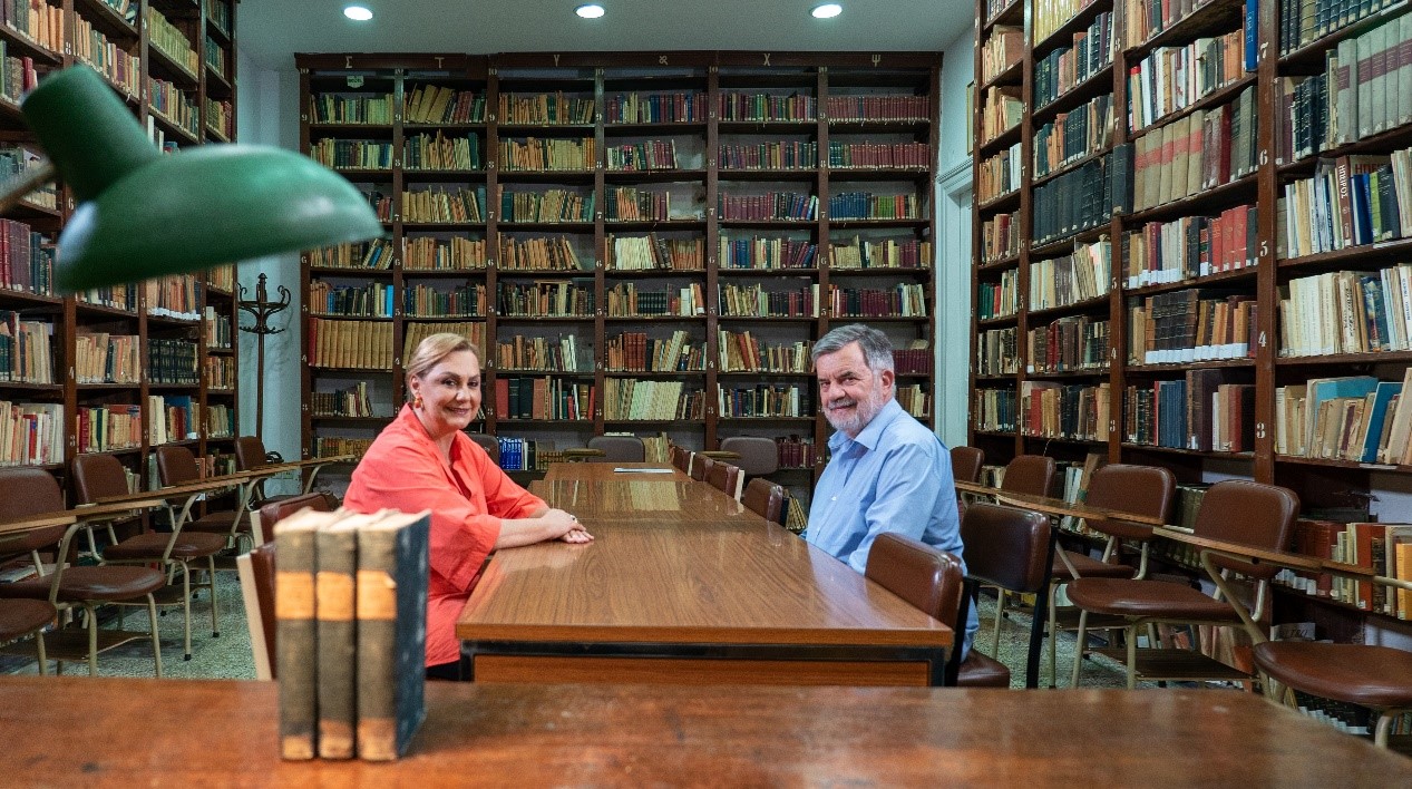 Στη μοναδική βιβλιοθήκη του Φιλολογικού Συλλόγου «Ο Παρνασσός», με τον καθηγητή Ιστορίας Αλέξανδρο Κιτροέφ.
