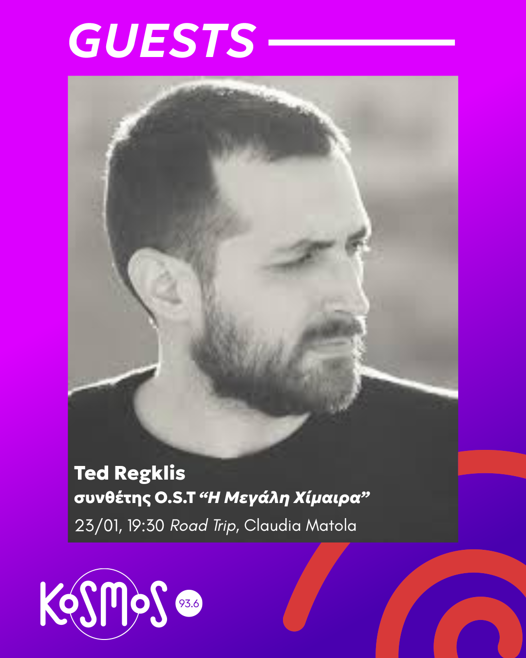 Την Παρασκευή 23 Ιανουαρίου 2026, στις 19:30, η Κλάουντια Μάτολα υποδέχεται στο στούντιο του Kosmos 93.6, έναν από τους πιο χαρισματικούς μουσικούς δημιουργούς της νέας γενιάς, τον Ted Regklis (Θοδωρή Ρέγκλη).