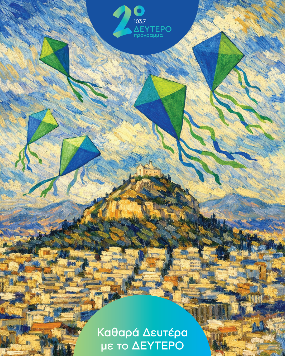 Ετοιμάστε τους χαρταετούς και ελάτε να κάνουμε κούλουμα στο «Δεύτερο Πρόγραμμα 103,7» με μια μουσική «πανήγυρη» αφιερωμένη στον ουρανό και τη γη. Το Δεύτερο Πρόγραμμα μεταδίδει ζωντανά από το Κέντρο Πολιτισμού Ίδρυμα Σταύρος Νιάρχος την Καθαρά Δευτέρα 23 Φεβρουαρίου 2026, στις 12:00 την συναυλία Ουρανού & γης «πανήγυρις». Μια γιορτή που ξετυλίγεται σαν ένα ταξίδι στη μουσική παράδοση του ελληνισμού, υμνώντας τη φύση, την ελευθερία και τη βαθιά ανθρώπινη ανάγκη για συνύπαρξη. Η Βάνα Δαφέρμου θα βρίσκεται εκεί για να μας μεταφέρει το κλίμα, να κεράσει τραγούδια και να πετάξει μουσικούς χαρταετούς στον ραδιοφωνικό αέρα.